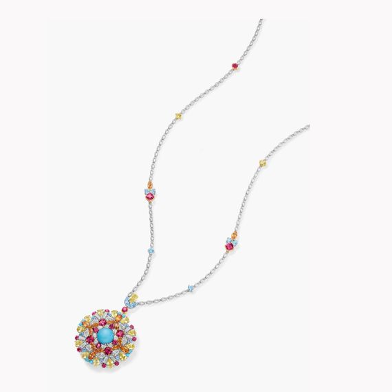 Almost 30 years later, with the Winston Kaleidoscope collection, it’s taking the concept another step further. The necklaces and watches offered replicate the view through the lens of a kaleidoscope with all kinds of precious gemstone combinations, from red rubellites to green tsavorites, purple sapphires to aquamarines, all paired with brilliant diamonds.
