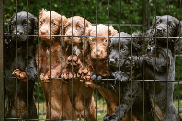 Per James’s Instagram, we’re dealing with six puppies in total, three of them black and three of them brown, all of them with big baleful eyes and long silky ears.
